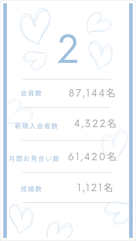 2月も新規入会者数は4,300名を超え、昨年月比では+15.2%成長しており、婚活ニーズの高まりを見せております。